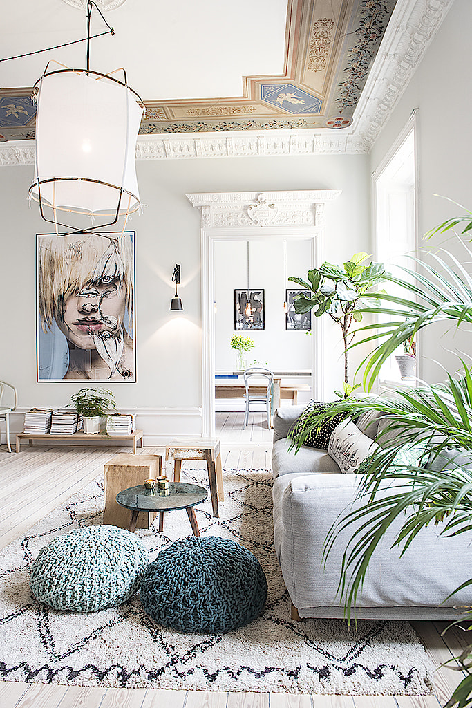 Je hebt genoeg ruimte, maak hier dan ook optimaal gebruik van. Verlichting is in een interieur één van de belangrijkste sfeerbepalers dus speel hier dan ook mee. Ik ben vooral groot fan van grote lampen aan het plafond. Bij voorkeur, als je hier de ruimte voor hebt, ook meerdere lampen in verschillende groottes en hoogtes voor een speels effect.